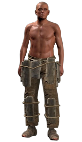 sadece bir kaya ve elinde meşale ile dünyada doğar. Kaya ile ağaçlara vurabilir[2]. Ayrıca kumaş,